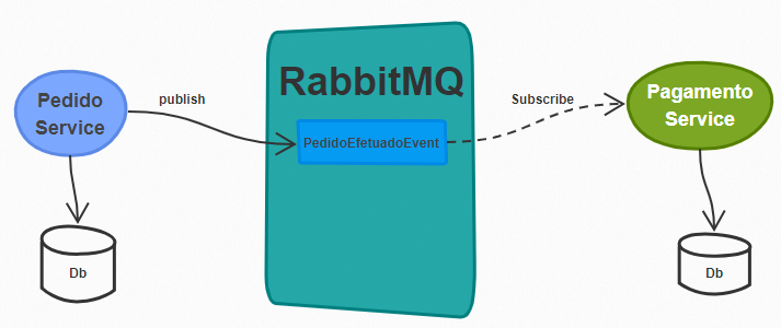 - Quando um novo pedido é efetuado, o serviço Pedido publica uma mensagem (PedidoEfetuadoEvent).